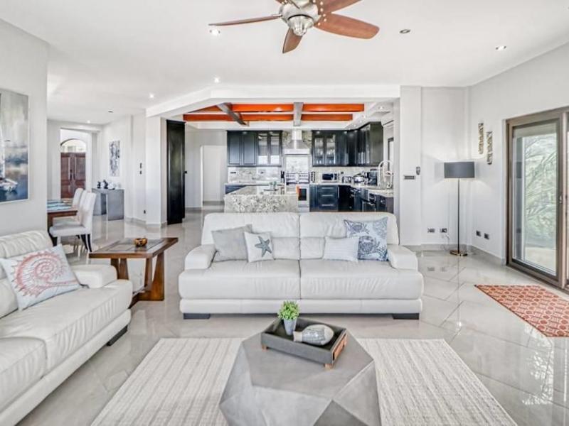 The house has LED lighting, a camera security system, and central air conditioning. In addition, each bedroom has a ceiling fan for climate control. This home also has an owner's closet and wine cellar that can be locked to keep private matters safe during rentals, as well as an oversized 3-car garage and a bodega. The Mar Vista community has been around for over 15 years and provides residents with 24-hour security, paved roads, underground utilities, and hiking trails around the beautiful green areas. Residents can also enjoy a delicious farm-to-table menu and a swim-up pool bar at the renowned restaurant Gracia.