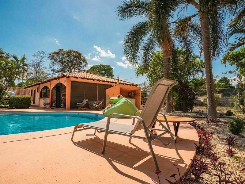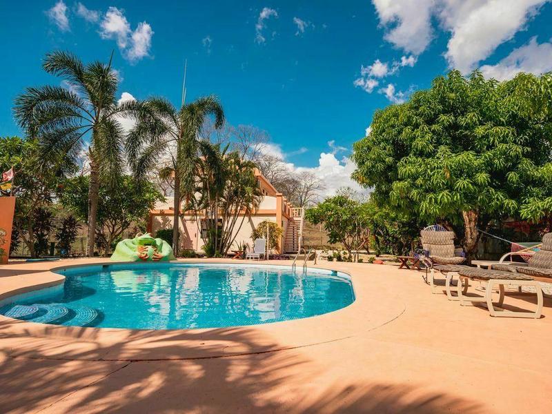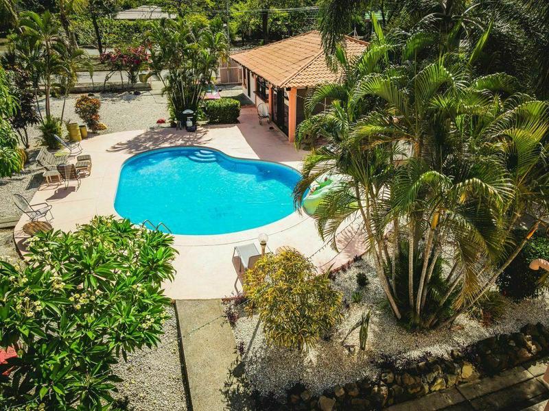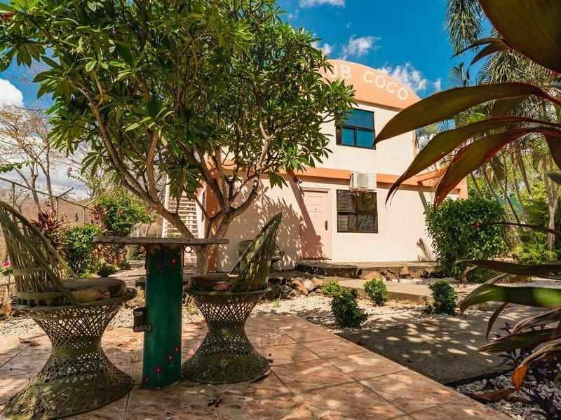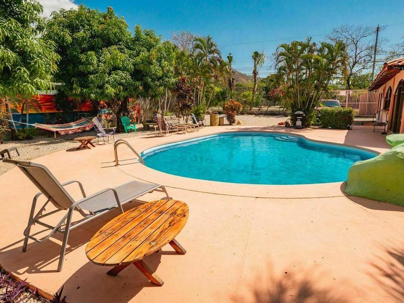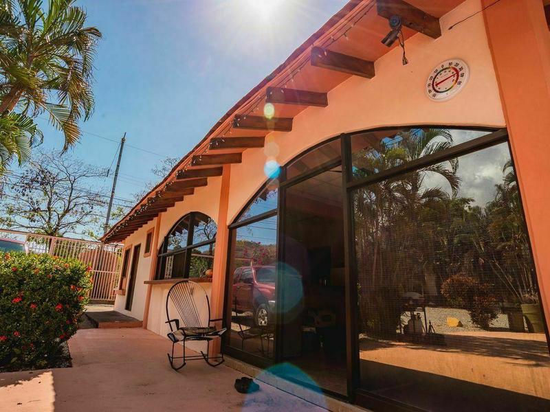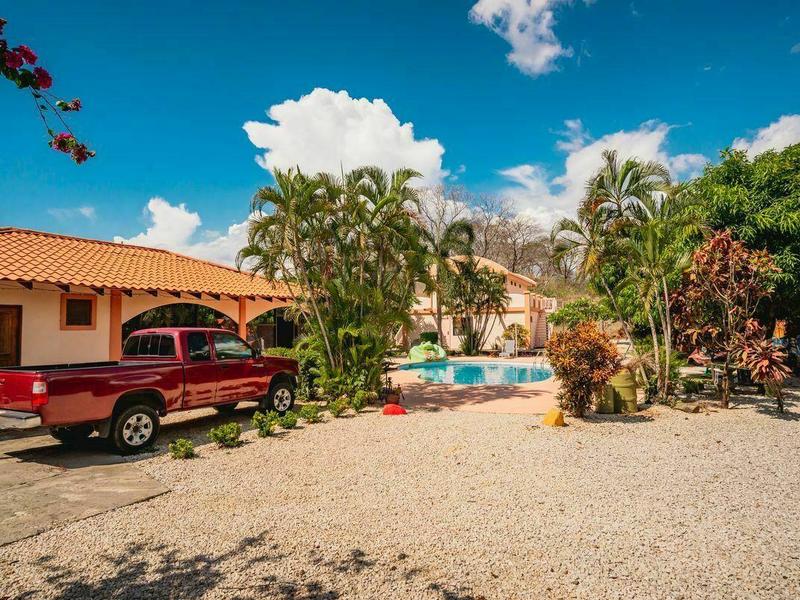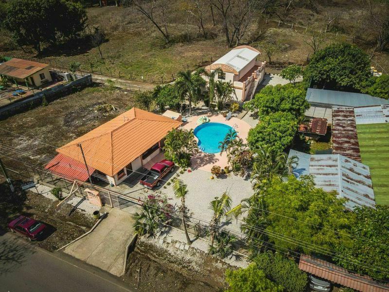 This property, which the locals call "Club Coco," offers a number of alternatives, such as the chance to start a restaurant or live in a home with other flats for profit. Excellent visibility, 94 feet of main road frontage, and approximately one mile from the city and beach of Playas del Coco. Size of Main House: 100 m2 / 1076 sq ft Two studios, each measuring 30m2 (323 sqft). Two units, each measuring 54m2 or 580 square feet. Total Area Built: 268 m2 / 2883 sq ft Lot size: 1210 m2 (little under 1/3 acre). Fully enclosed, and landscaped with established fruit trees and palms, a spacious pool, BBQ area, lots of parking, and a bodega for storage. Large living room, dining room, and kitchen are featured in this two-bedroom, two-bath home. Live, rent, or operate your own business! our fully furnished apartments with kitchens, bathrooms and air conditioning are housed in a two-story building in the back of the property. The second floor has enormous balconies. Inquire with us for details! TV