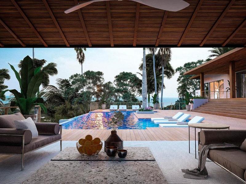 Pool (Infinity Pool) Air Conditioned Gourmet kitchen Great Room Views (Ocean or Mountain) Outdoor Shower Breakfast Area Exercise Room Laundry Room Media Room Fruit Trees Sustainable Construction High-Efficiency Appliances Master suite on the main level Private outdoor shower Entertainment spaces Covered Parking Storage for surfboards, bikes, etc. Lushly landscaped outdoor spaces Flat outdoor area for play The grey water system for reclaiming water Privacy Sleeping loft with built-in bunk beds High Ceilings Furnished Paved Road
