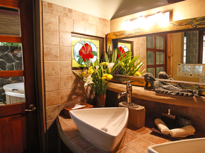 The elegance is manifested in the design and furnishings of the 6 intimate bedrooms, with intricate detailing, cathedral ceilings and the use of tropical hardwoods, all of which rest along side the cascading stream that leads to 3 dynamic waterfalls. Each bedroom has its own bathroom and balcony, overlooking the cascading stream and jungle. Perfect for family and friends visiting. There is also a 7th bedroom with large bathroom and sitting area facing the tropical jungle. All set up perfectly for privacy when family and friends visit.