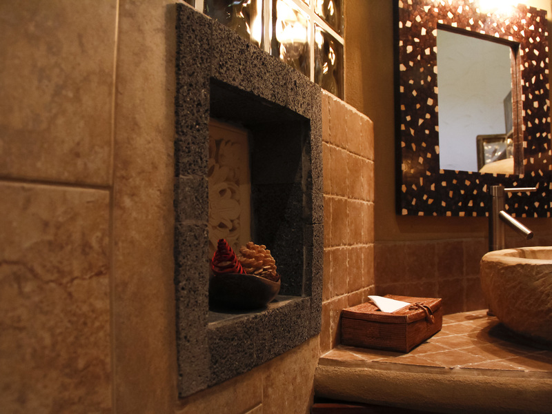 The ground floor of the main area has a relaxing outdoor living space with fish pond, open air kitchen and waterfall-side dining room, which all compliment the enchanting jungle surroundings and allow for the enriching enjoyment of the falls.