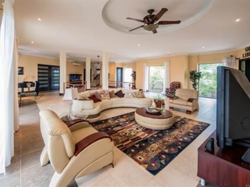 DETAILS: The main level entry takes you through beautiful stained glass doors into a majestic lobby accented by a grand sweeping staircase. Off this lobby you will find 5 master suites, all with their own unique design and décor and private in-suite bathrooms. On the other side of the lobby are another set of custom etched glass doors leading down to the entertainment area with gas BBQ grill, outdoor fridge, heated in-ground pool and a poolside bathroom with shower. Just beyond, is an ocean view outdoor Jacuzzi and private set of stairs to the ocean where you can enjoy the magnificent soft white sands of Flamingo Beach! Only a handful of properties have this exclusive ability to access this beach directly from the home. The second level is the main living area, including the Grand Salon with luxury furnishings, large TV, and a grand piano. This area opens onto a balcony with spectacular ocean views which offers a gas grill and also provides access to the dining room. This massive ocean view dining room is accessible both from the Grand Salon and the kitchen. The oversized chef’s kitchen is state-of-the-art with all stainless-steel appliances, including a matched set of double door refrigerators and freezers, 2 wall ovens, built-in microwave, electric stovetop and dishwasher - all surrounded by custom granite counter tops. A unique feature in this home is the “speakeasy” room, with a card table, wet bar, and décor reminiscent of an earlier time. It is a great place to watch sports and be close to the outdoor entertainment allowing everyone to be together. Above the Grand Salon are two master suites. The first one includes a King bed that has an unobstructed view of the ocean, a sizeable sitting area, wall-size solid wood desk and a private bath that features a separate soaking tub and glass wall shower. The second master suite also has a king size bed optimally positioned to arise to ocean views. Additionally, a large en-suite bathroom including double sinks and a custom glass shower provide privacy for guests. Throughout the home there are several areas for storage including a walk-in pantry, linens storage room, large laundry room with shelving, among other robust space. The fourth floor has large windows that open on either side of the house offering fresh cross breezes. This level is not developed; however, it is roughed in. This home has an elevator that accesses all the floors ensuring wheelchair friendliness. Even the wide path to the pool is able to accommodate a wheelchair. One bathroom also features a wheelchair accessible shower. Casa Alegria has plenty of parking and garage space too. There are 2 garages that fit 6 cars.