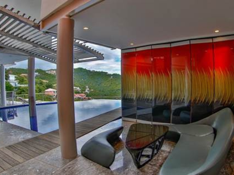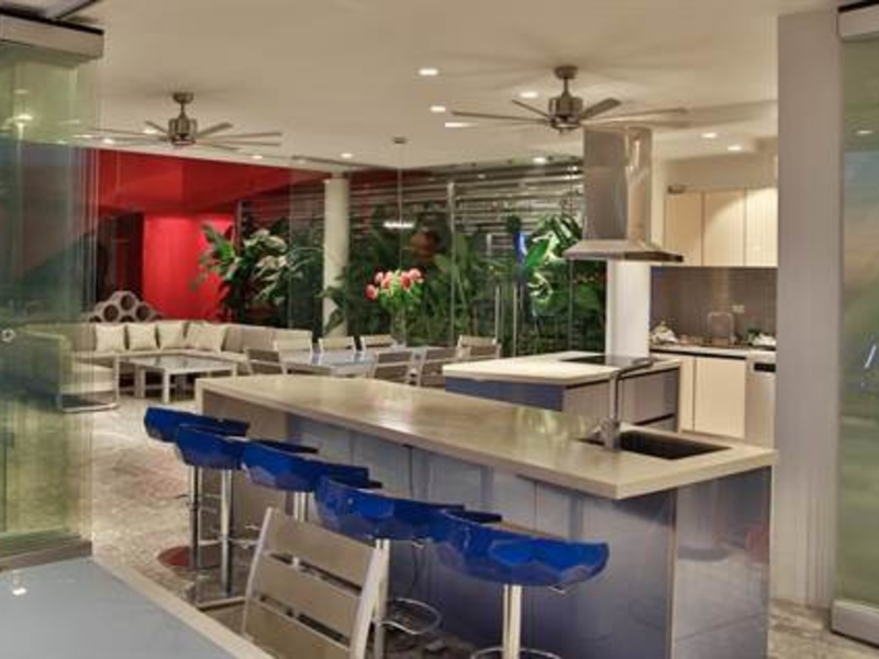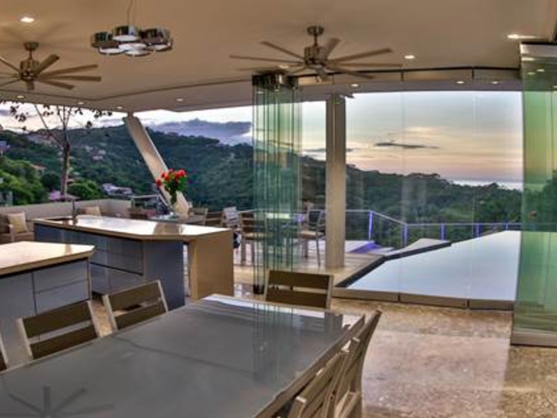 From the moment you enter you will discover an open living space connecting the large kitchen and dining and entertaining areas, surrounded by unique floor to ceiling glass walls that open completely, allowing views in every direction. The kitchen is sleek, stylish and modern, designed to keep up with the gourmet and look amazing. The walls open onto the outdoor living area and the multi-level terraces around the infinity pool with its beautiful teak walkway. Imagine having dinner out here every night and listening to the tropical sounds and the waves.