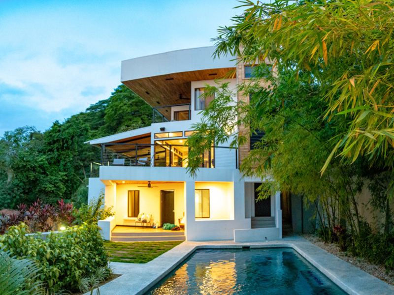 Casa Tropical is a successful vacation rental and offers sleek contemporary decor, sweeping million-dollar ocean views, and is located right in the heart of Tamarindo. The floor-to-ceiling glass sliders open up to a spacious balcony and dining area for an ideal indoor/outdoor living space. Here, you'll feel the refreshing ocean breezes, hear the tropical birds singing and howler monkeys! The first and second-floor living spaces have spacious open floor plans, large balconies and patio, tons of windows and offer a truly tropical and luxurious feel. It’s a surfer’s paradise since you can check the waves from the balcony!