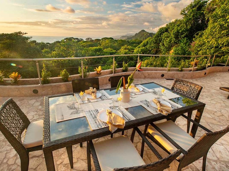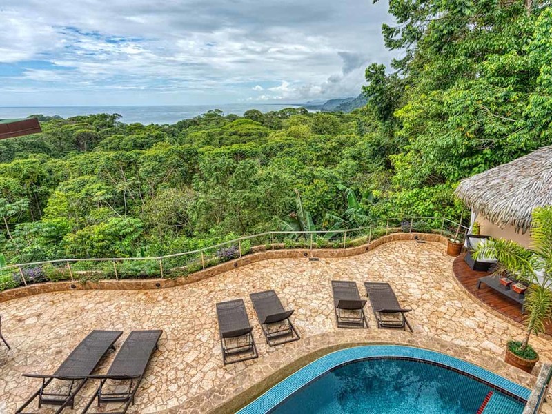 Exclusive 8,365 square foot, newly renovated, luxury home offering a breathtaking 180-degree view of ocean, jungle, and of course, perfect sunsets. The Villa is located 350 feet above the ocean, on a two-acre property, in a safe and secure gated community, only a four-minute drive from the ocean and beaches.