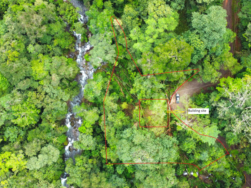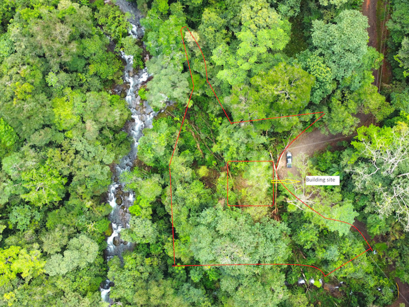The property is 10 minutes to Playa Matapalo, 20 minutes to Dominical and 25 minutes to Quepos/Manuel Antonio and Marina Pez Vela. It is a jewel in the middle of the rainforest. The property is over 1.27 acres (5,140sqm) and is nestled in a beautiful rainforest with breathtaking river, mountain and rainforest views. You can enjoy the cool breezes all day long coming from the river thru the main building pad and do your morning hike every day in your private path to the Portalon River and cascades at the bottom of the property. Since the property is at the far end of the development, you only have the sights and sound of nature that surround the property and your future dream home with no other homes in sight.