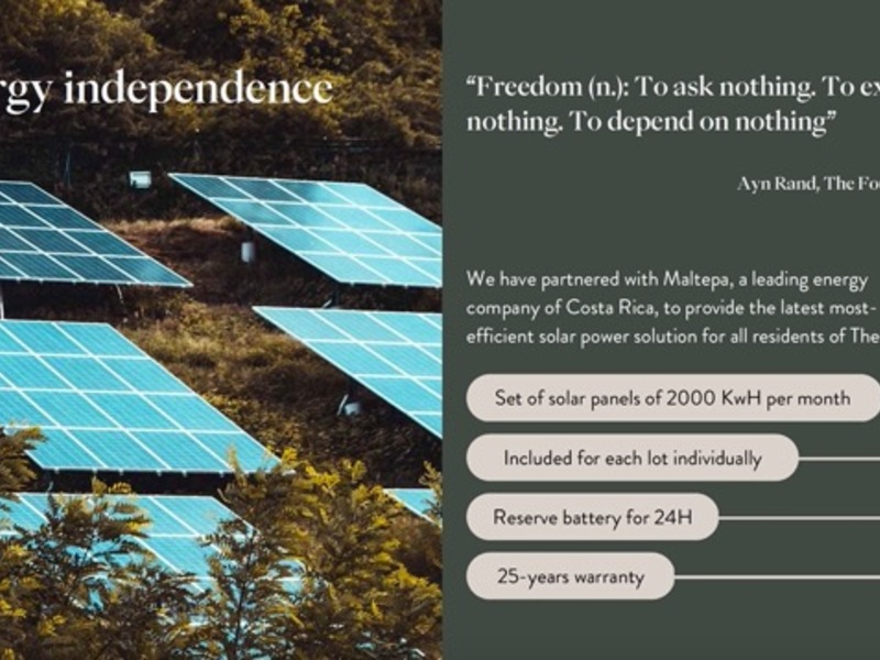 More than 60 Lots available, selling now the last ones of phase 2 and starting with phase 3, which has lots of 5,000 square meters (average) starting at $400,000 US. All lots come with electrical independence thanks to solar panels and have water availability.