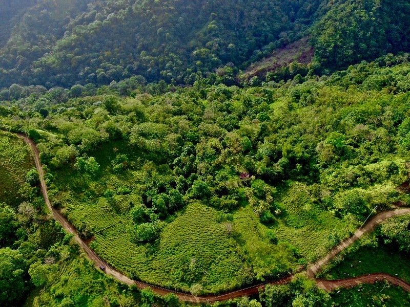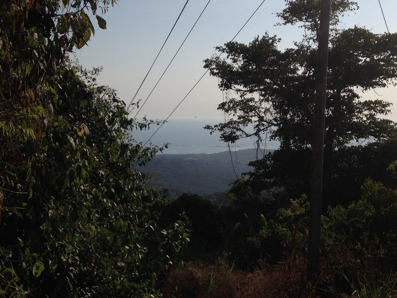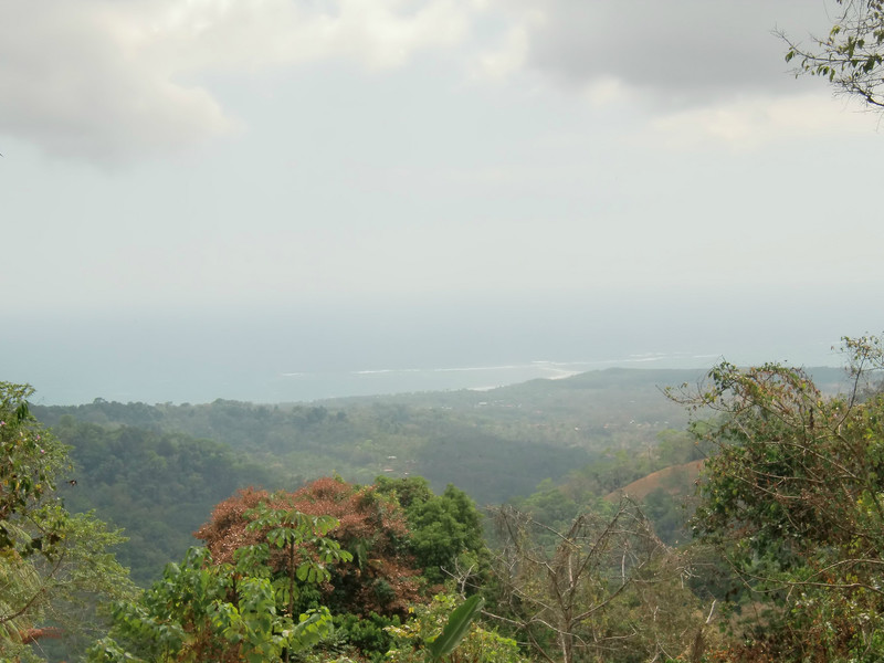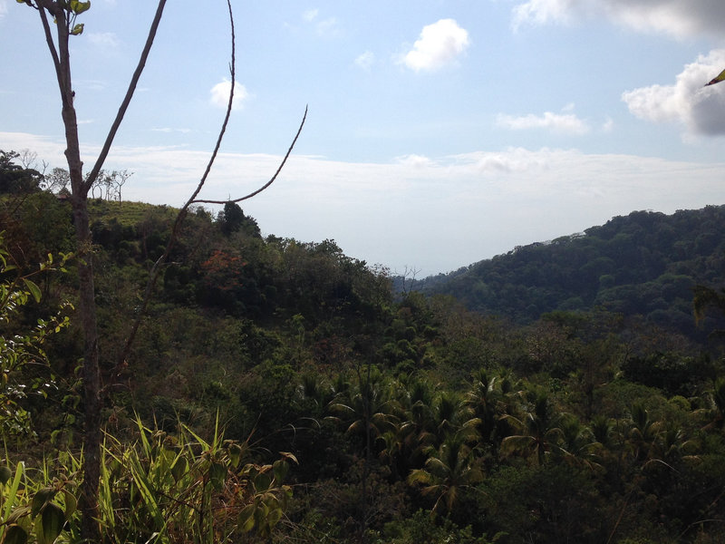You have incredible views of the Pacific Ocean to the west and the rest is jungle covered mountain views. The mountain views are 80% primary old growth jungle. There is very little cleared land up in this area, so no farming or noise to bother you.